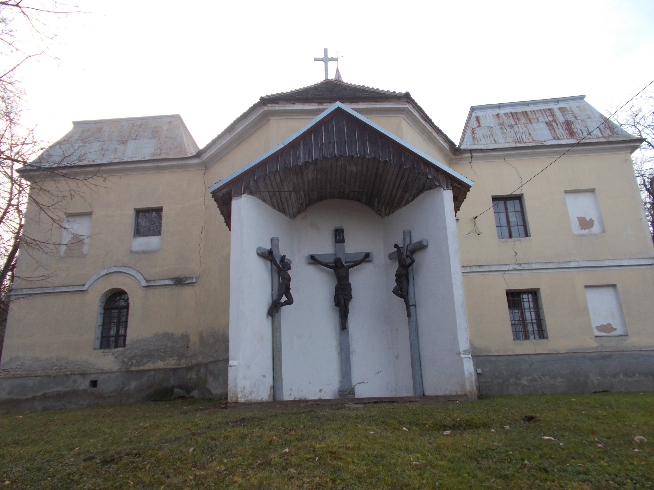 A templom 1829-ben, a Jeszenszky-kastély elkészültével egyidőben épült. Szentélye hátához csatlakozik az oldalfalas, sátortetős kálvária-építmény, mely országosan is különleges jellegű. A két lator alakja középen Jézus feszületével egészen különleges kifejező erejű.